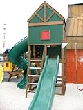 The Playkids 4-Position Swing with Platform has a tower of 5 x 5 feet size with 60 inch high platform. The 4-Position Swing with Platform comes with 5 x 5 feet hard plastic or wood roof, 5 x 5 feet wood picnic table, four position swing set with 4 x 6 inch beam, climbling ladder, hard plastic upper clubhouse and hardware includes stainless screws, galvanized lag bolts with plastic caps.